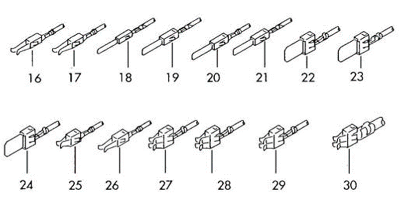 ** - VW P/N N/A - 2.8mm flat contact with retaining lug for 0.35-0.5mm² wire (male) -> TYCO p/n, tin plated: 2-964297-1; TYCO p/n, gold plated: 1-964297-3