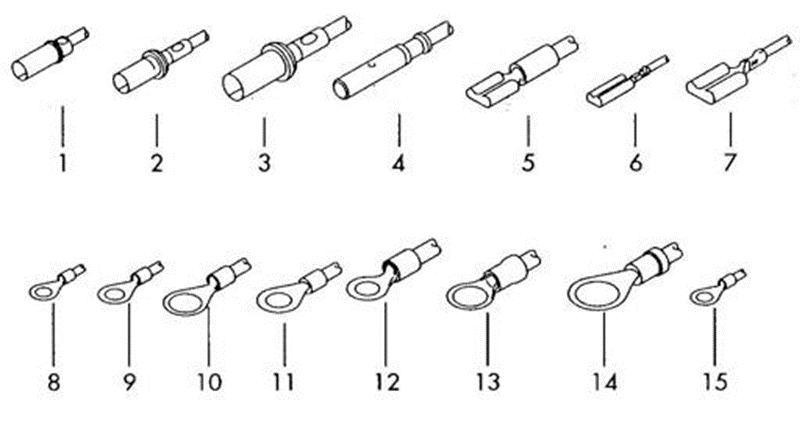 19 - N 10336105 - 1.5mm flat contact with retaining lug for 0.5-1.0mm² wire (male) -> TYCO p/n, tin plated: 964270-2; TYCO p/n, gold plated: 964270-3 2.8mm PINS (Junior Power Timer):