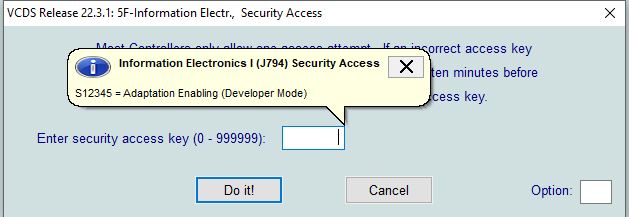 \n Copy file (depend on your unit) to somewhere else (let say Desktop), rename it to part number of your unit (example 5NA-035-043.clb) and place it back to C:\Ross-Tech\VCDS\Labels\ and try to connect to MIB2 unit once again. Now you should see label in Advanced ID and S12345 script for developer mode should work. \n