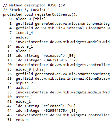 This is all done by looking up the command values like iconst_4, aaload, invokeinterface etc.. and thus finding the correct occurrence in the JXE binary data.