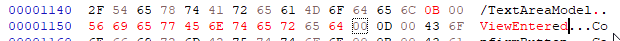 so "CancelLabel"/ now "ViewEntered" is constant 47 dec but it is not 0x2D but 0x2E ( zero is first element)
