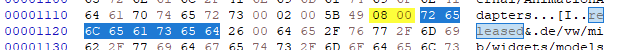 You will find out that "released" is used 4 times in Java code but only once in JXE. \nThis means they all use the same string reference!\nWhen you change the Text in JXE, it will change all occurrences. \nYou can only replace the text can only be replaced with a same size text or with a shorter one.