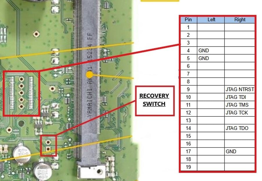 JTAG connection to MMX :::info Jtag pinout for MMX is the same as for any MHIG/MHI2 Harman/Aisin unit ::: :::info Jtag pinout for Atlas-L (MB9DF125E) :::