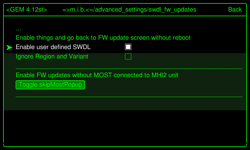 Testmode Menu: GEM, SWDL, etc via Service Mode