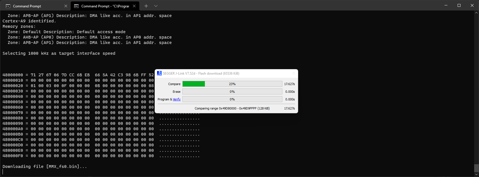 "C:\Program Files\SEGGER\JLink\JLink.exe" -CommanderScript mmx_jlink.txt -Device cortex-a9 -SI jtag -Speed 1000 -JTAGConf -1,-1