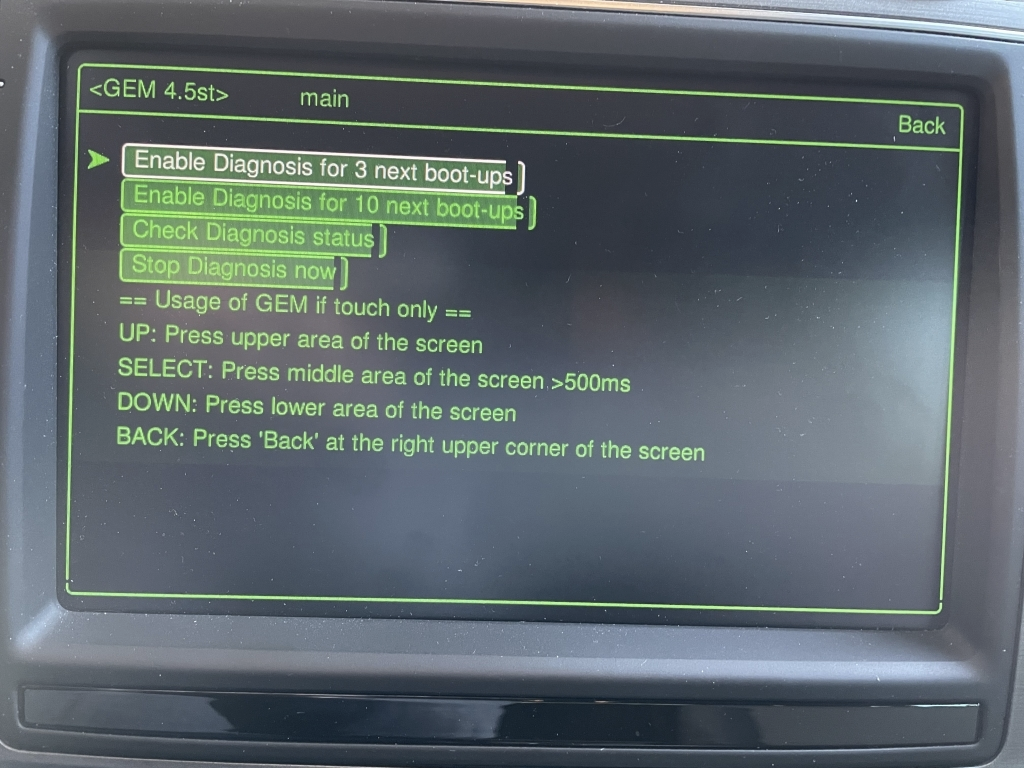 SW Train Version before patch: MHI2_ER_VW==X==11_P3301 (X instead of G which blocks normal firmware update by user) & no proper green menu: