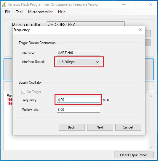 * Interface Speed 115,200bps, Frequency (4.00Mhz):