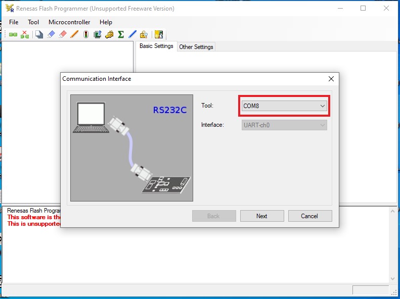 FT232 TTL adapter and Renesas Flash Programmer V2.05.03