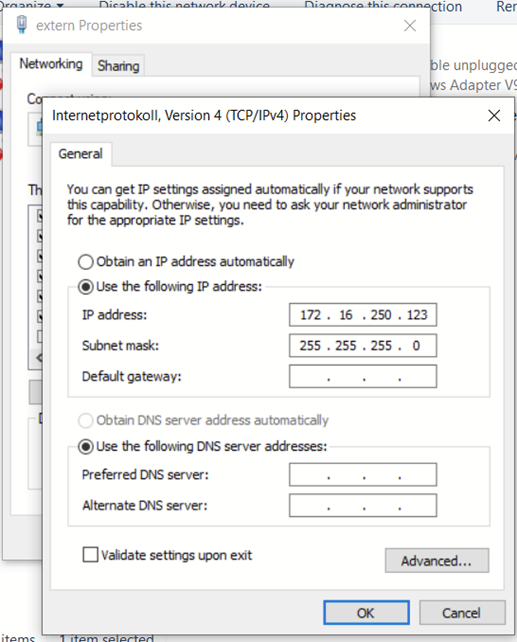 The following IPv4 settings are required on the PC you want to use to connect to the MIB2 unit: