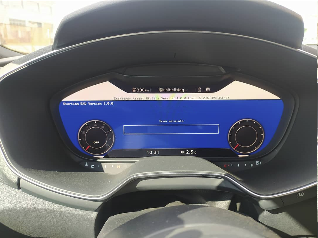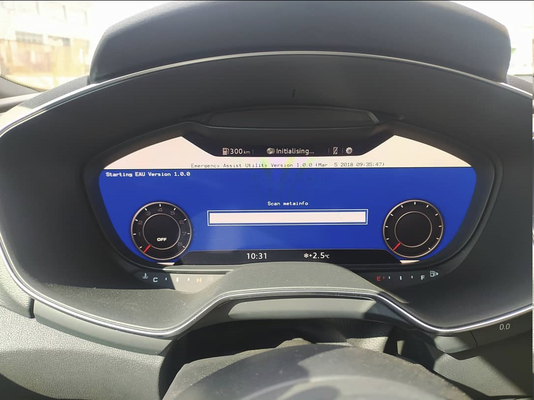 Updating from very old FW version leaves the MIB unit stuck in the blue EAU screen. The update.txt is present but the automatic recovery via blue EAU ist not working.