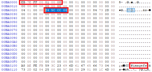 To quickly find the offset of the ifs-root-stage2.ifs in rcc_fs0 or ifs-root.ifs, you can search for EB7EFF00010008 bytes or #imagefs string in HxD: