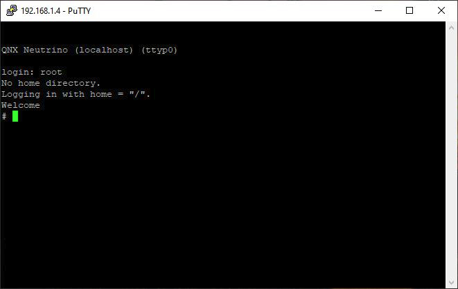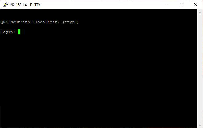 If everything has been configured correctly, you can tell from the QNX Neutrino login message that it worked.