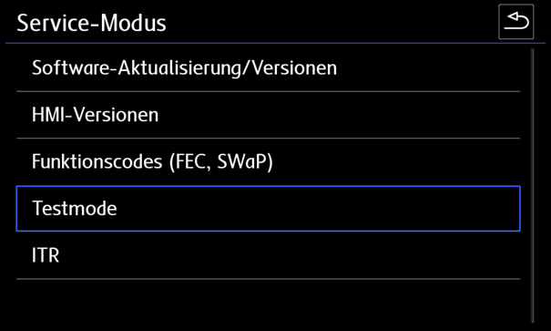 Press the MENU button on the radio longer until another (service) menu opens. Select the test mode there.