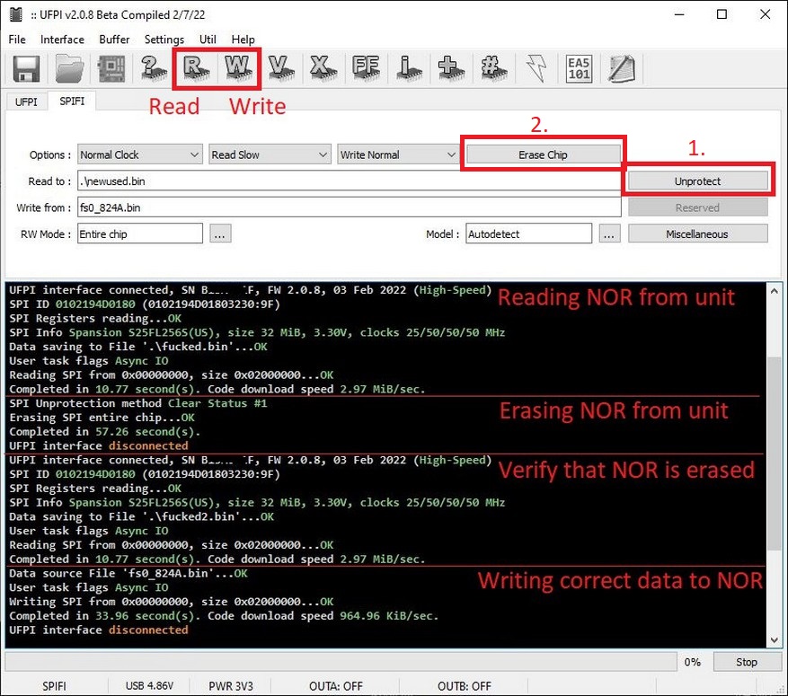 With this assembly I was able to read, erase and write delphi NOR (Yes, erase and program NOR from unit)