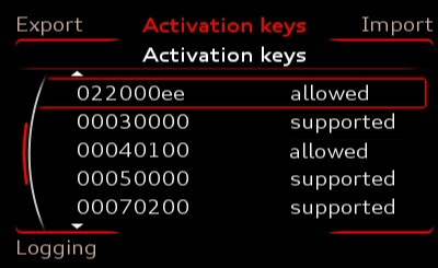 ::: 2. To have FECs 00040100 (Navigation) and 022000ee (lifetime EU maps) as allowed in "Activation keys" of RED menu: